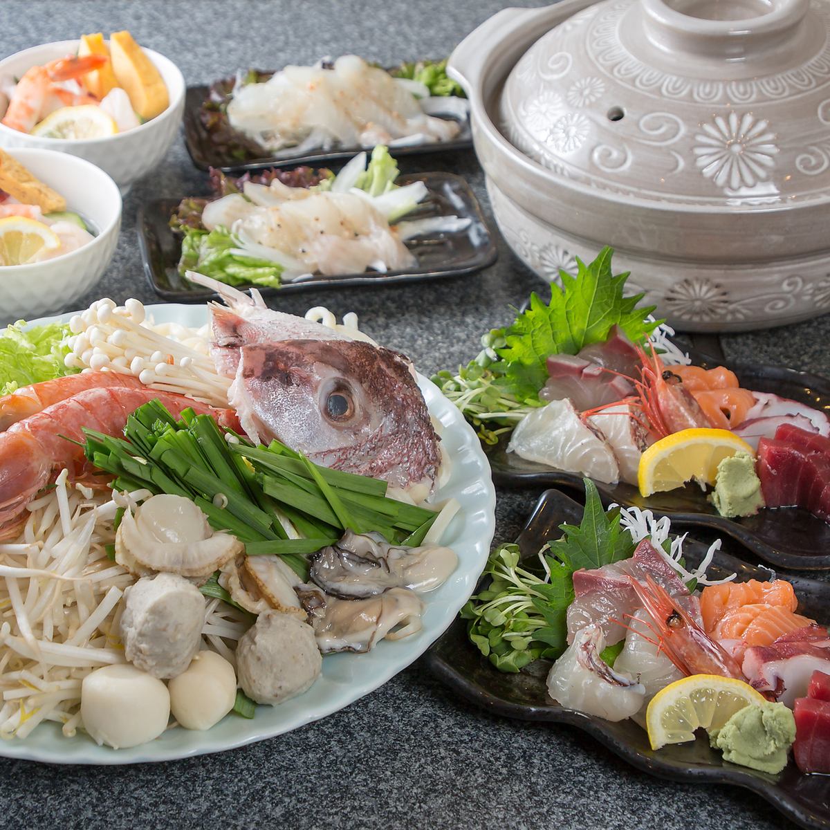 当店は鍋のメニューもおすすめ!宮崎産の鶏もも肉を使用した鶏すき鍋、さぬきうどんと海鮮がマッチするうどんすき鍋、そして海鮮ちゃんこ鍋はかつおと昆布で取った旨味だしと醤油が海鮮にベストマッチ!また豊富な追加メニューでお客様のお好みにアレンジが可能です!
